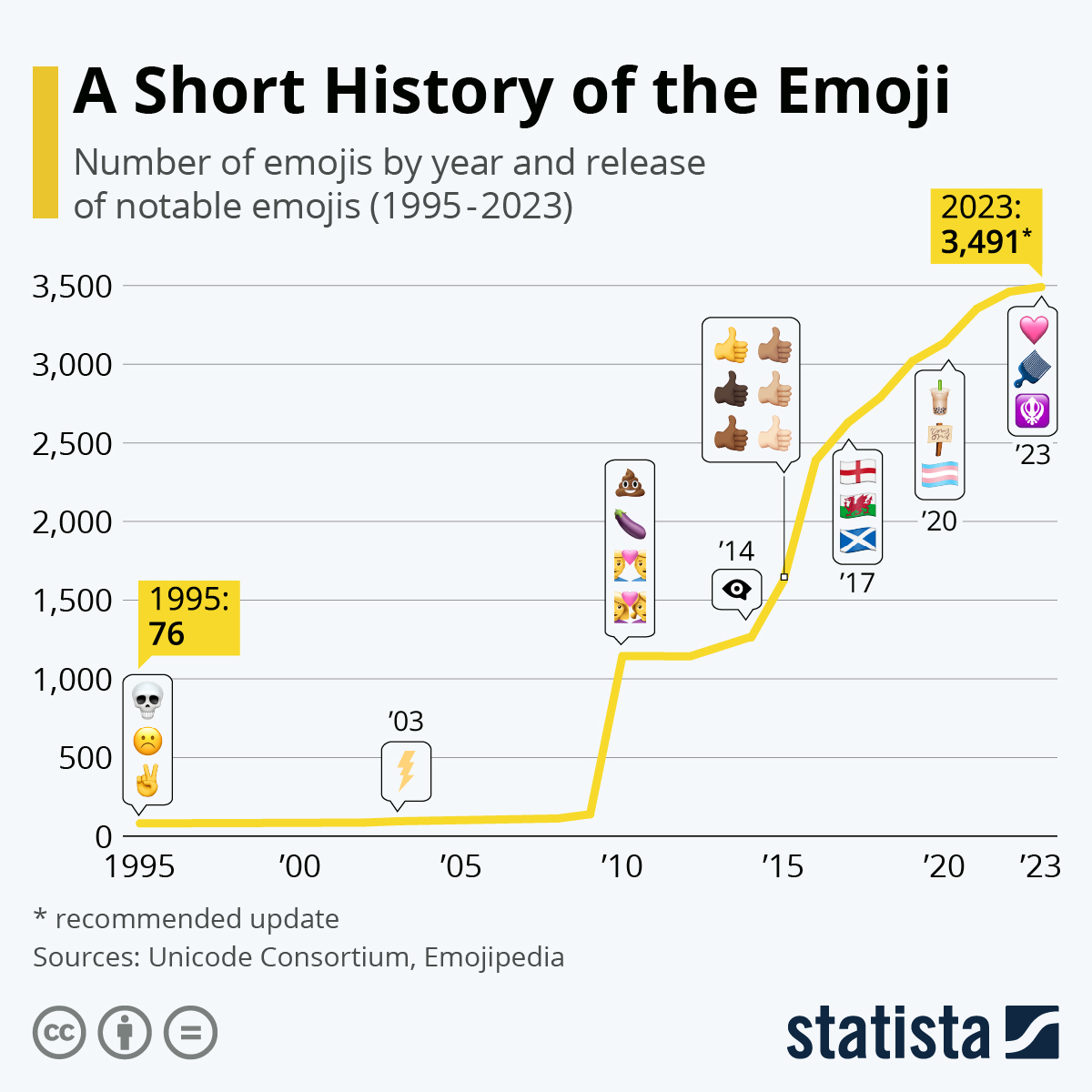 2020-ban 217, 2021-ben 112 új hangulatjelet adtak ki. 2023-ban valószínűleg 31 új emoji fog megjelenni: többek között a rózsaszín szív, a jávorszarvasfej, a szamár, a liba, a feketerigó, a gyömbér, a medúza és a rumbatök; a pacsira tartott kéz – balra és jobbra egyaránt – lesz az egyetlen testre szabható emoji az újak közül. A frissítés közel 3500-ra növelheti a hangulatjelek számát jövőre. A Unicode szeptemberben fogja nyilvánosságra hozni az Emoji 15.0 végleges, jóváhagyott emojikészletét, ami legkorábban 2023 januárjától lesz elérhető.