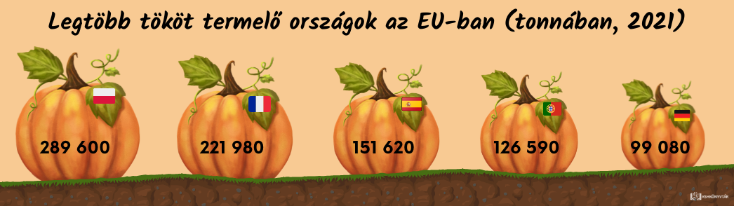 2021-ben az EU országaiban körülbelül 40 000 hektárt szántak sütő- és más tökfajták termesztésére, amiből a becslések szerint 1,1 millió tonnát takarítottak be. Az EU-ban az összes sütőtök és tök körülbelül 88%-át mindössze öt tagállamban termesztették a tavalyi évben: Lengyelországban (289 600 tonna), Franciaországban (221 980 tonna), Spanyolországban (151 620 tonna), Portugáliában (126 590 tonna) és Németországban (99 080 tonna).