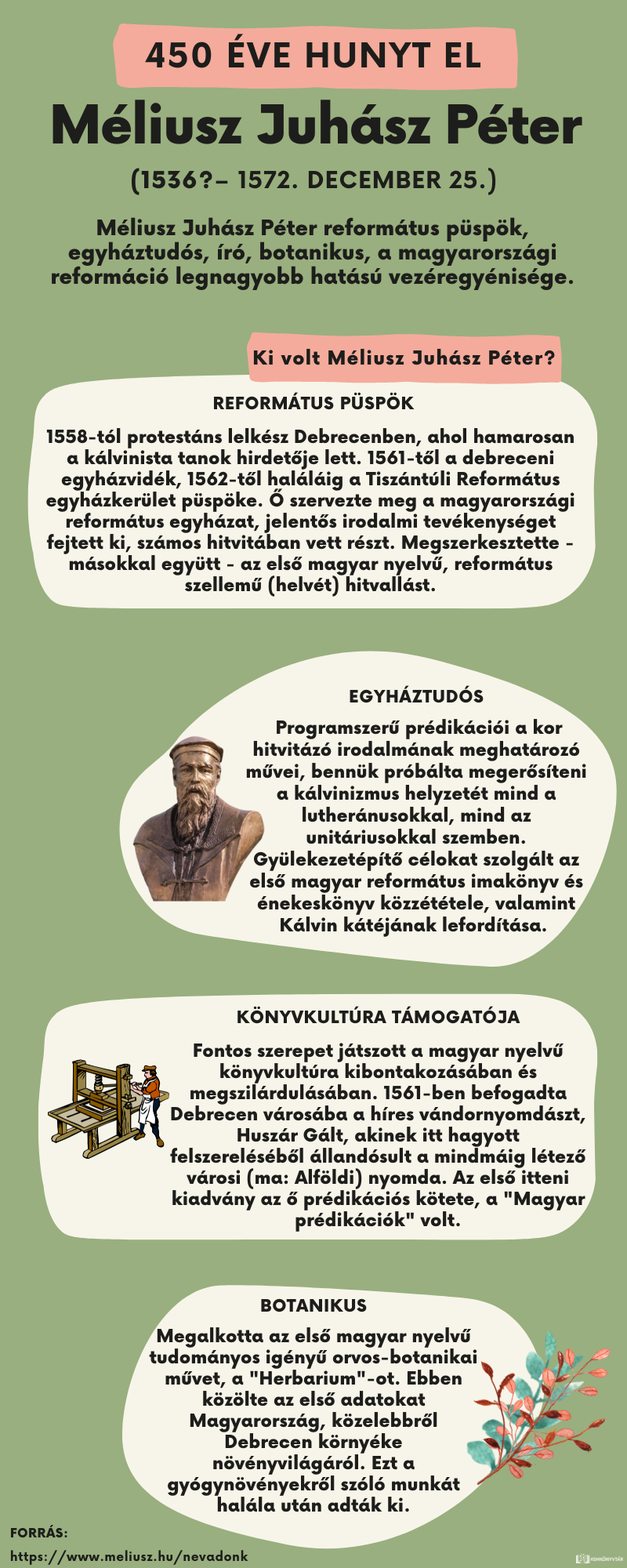 450 éve hunyt el Méliusz Juhász Péter (1532–1572) református lelkész, püspök, egyháztudós, író, botanikus