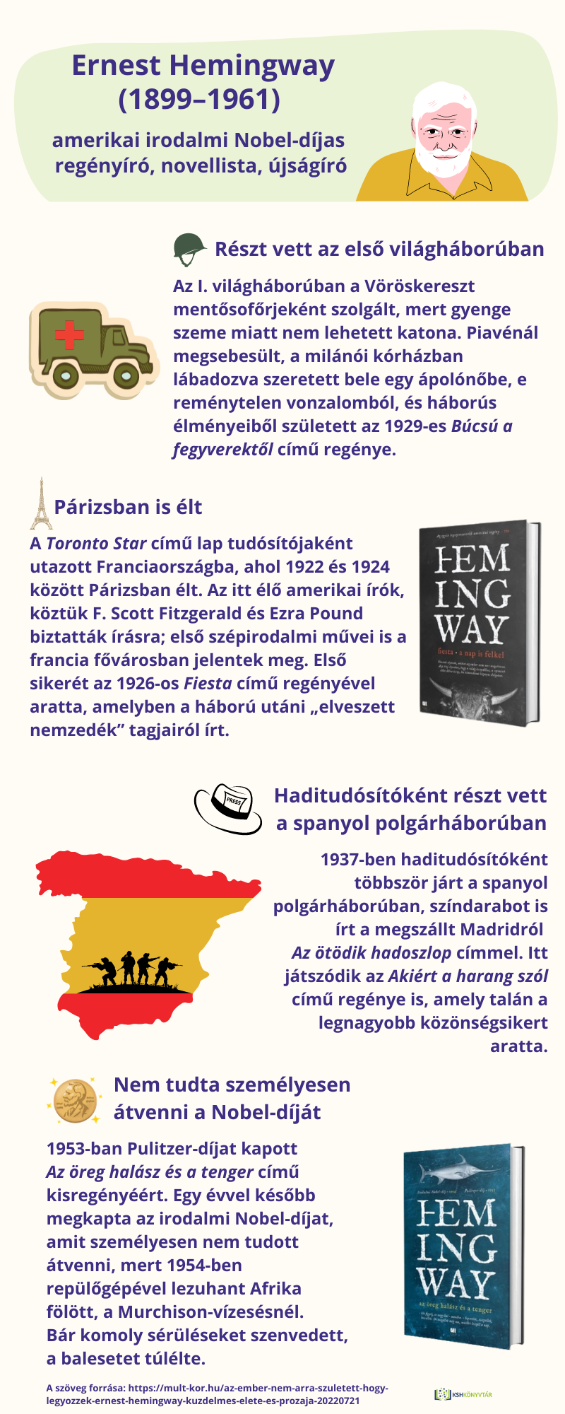 125 éve született Ernest Hemingway (1899–1961) irodalmi Nobel-díjas amerikai regényíró, novellista, újságíró