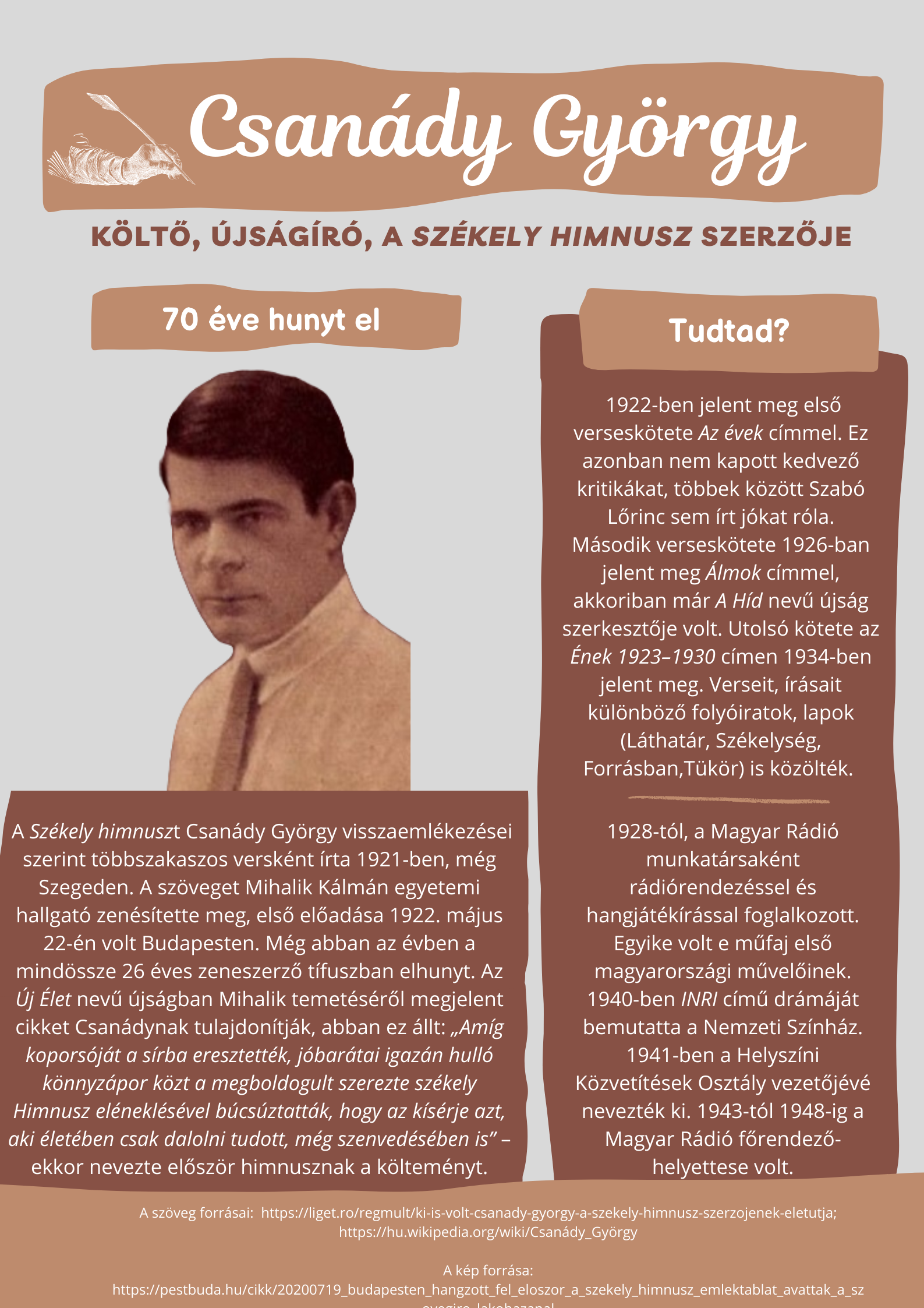 70 éve hunyt el Csanády György (1895-1952) költő, újságíró, a Székely himnusz szerzője