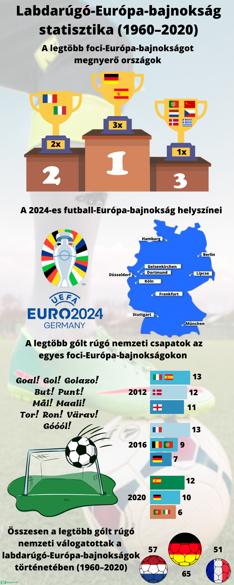 Ma játszik a magyar csapat a házigazda németekkel a labdarúgó-Európa-bajnokságon, ennek alkalmából összegyűjtöttünk néhány statisztikai érdekességet a futball-Európa-bajnokság eddigi történetéből.