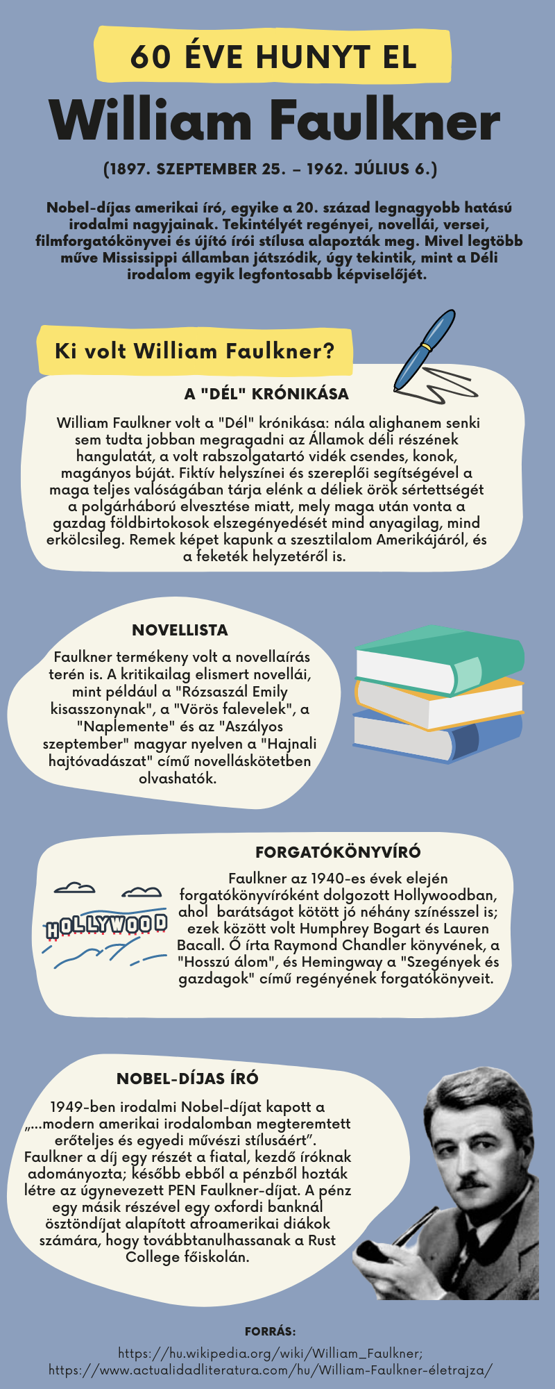 60 éve hunyt el William Faulkner (1897–1962) irodalmi Nobel-díjas amerikai költő, regényíró