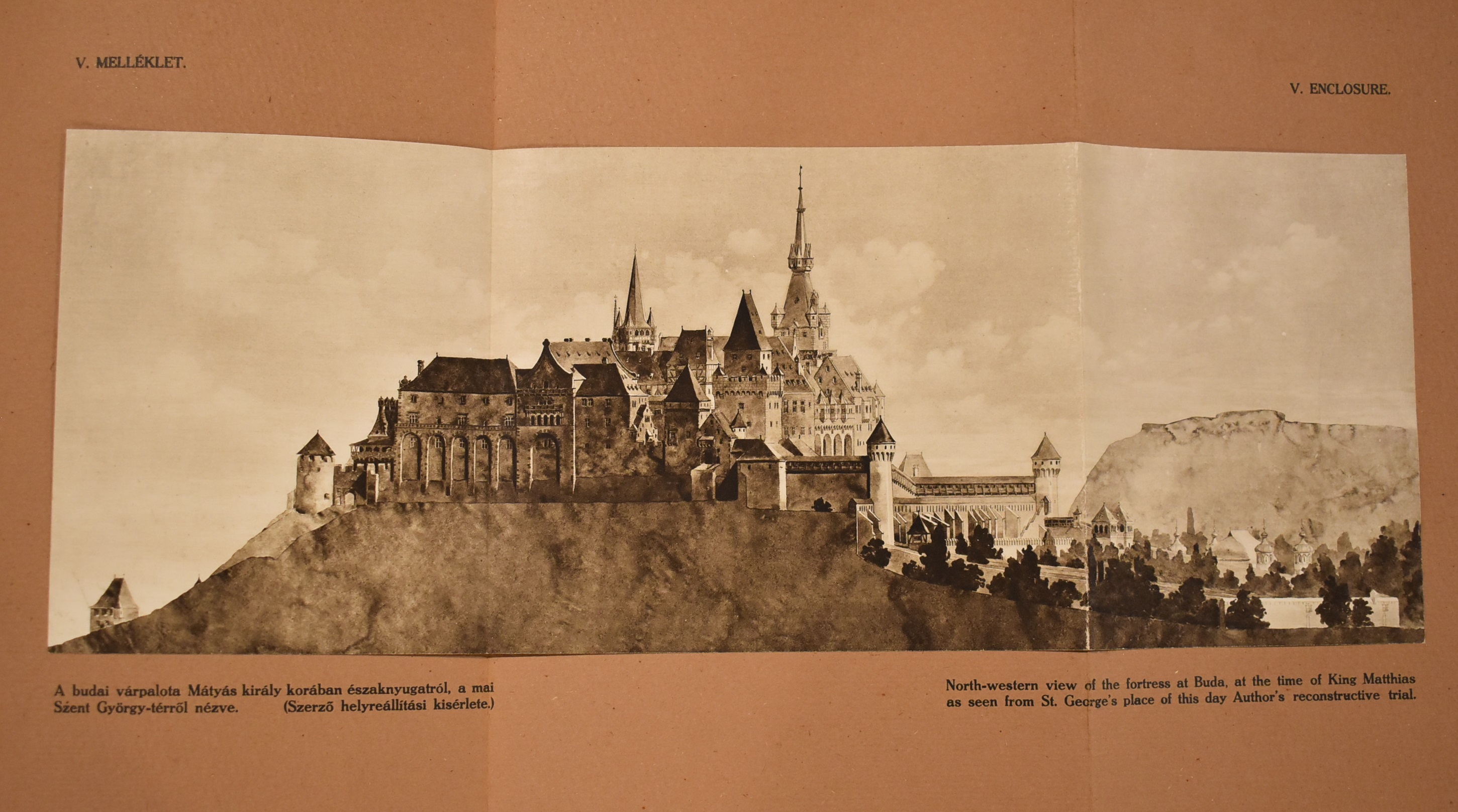 V. melléklet. A budai várpalota Mátyás király korában északnyugatról, a mai Szent György-térről nézve. (Lux. 1922)