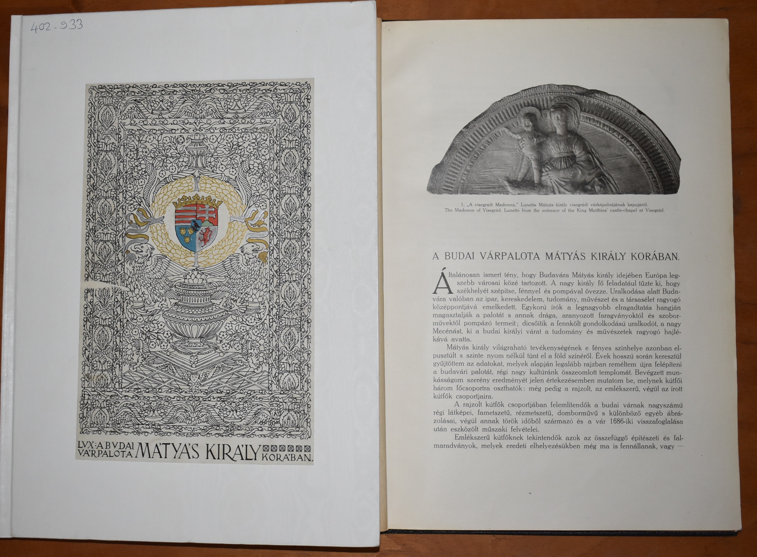 Lux Kálmán (1880-1961) építész, restaurátor 1920-ban, magánkiadásban jelentette meg a budai Várhegyen végzett ásatások eredményeit összegző, a középkori királyi vár palotáinak és templomainak rekonstrukcióit megjelentető A budai várpalota Mátyás király korában című albumát, amely nyomon követi a Magyar Királyság fénykorában emelt összes középkori épület budavári együttesének történetét IV. Béla kezdeti építkezéseitől az Anjouk és Zsigmond király nagyszabású fejlesztésein át, Hunyadi Mátyás igényes, és a saját ideje szerint nagyon korszerű átépítő munkáival bezárólag.