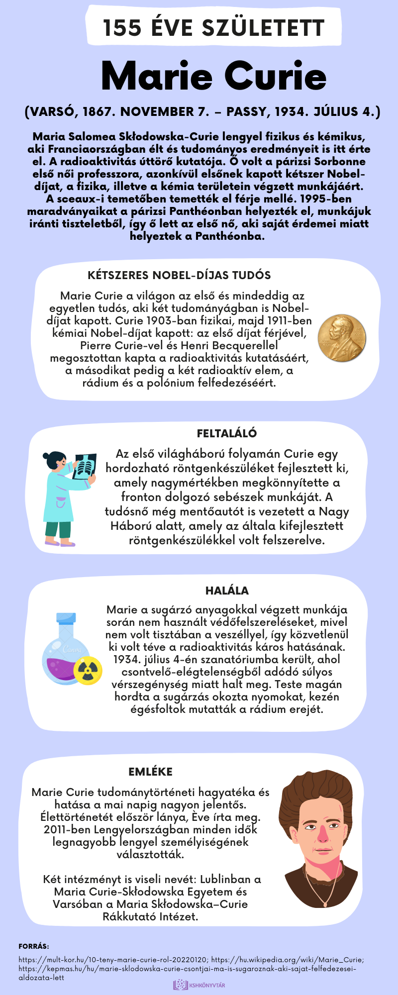 155 éve született Marie Curie (1867–1934) Nobel-díjas fizikus és kémikus
