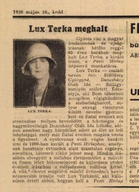 1938. május 9-én hunyt el Lux Terka, rá emlékezünk