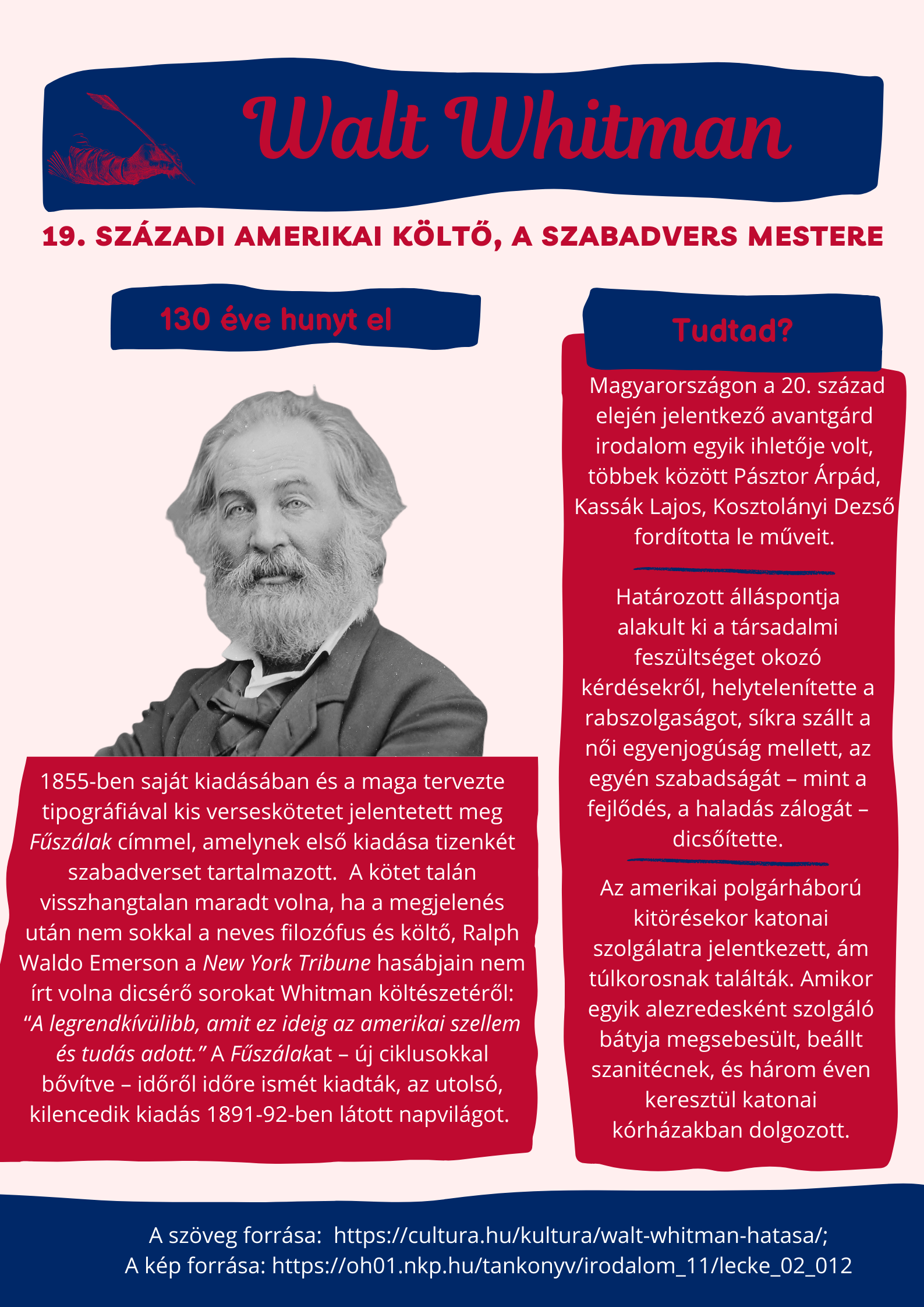 130 éve hunyt Walt Whitman, amerikai költő
