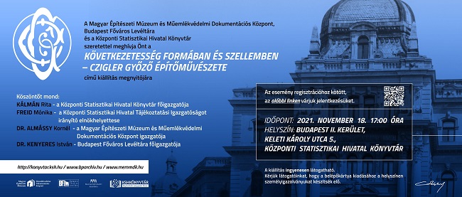 November 18-án (csütörtök) 17 órakor nyitjuk meg a Magyar Építészeti Múzeum és Műemlékvédelmi Dokumentációs Központtal (MÉM MDK) és Budapest Főváros Levéltárával (BFL) közösen rendezett Czigler Győző-kiállítást, amelynek elemei 2022. január 31-éig megtekinthetők a könyvtár folyosóján és a Dányi Dezső terem előtti közösségi térben.