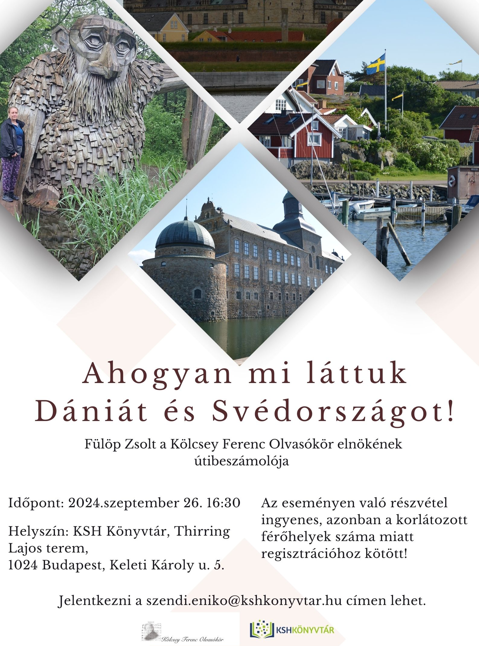 Fülöp Zsolt, a Kölcsey Olvasókör elnöke tart úti élménybeszámolót Dániáról és Svédországról, a Kölcsey Ferenc Olvasókör szervezésében.