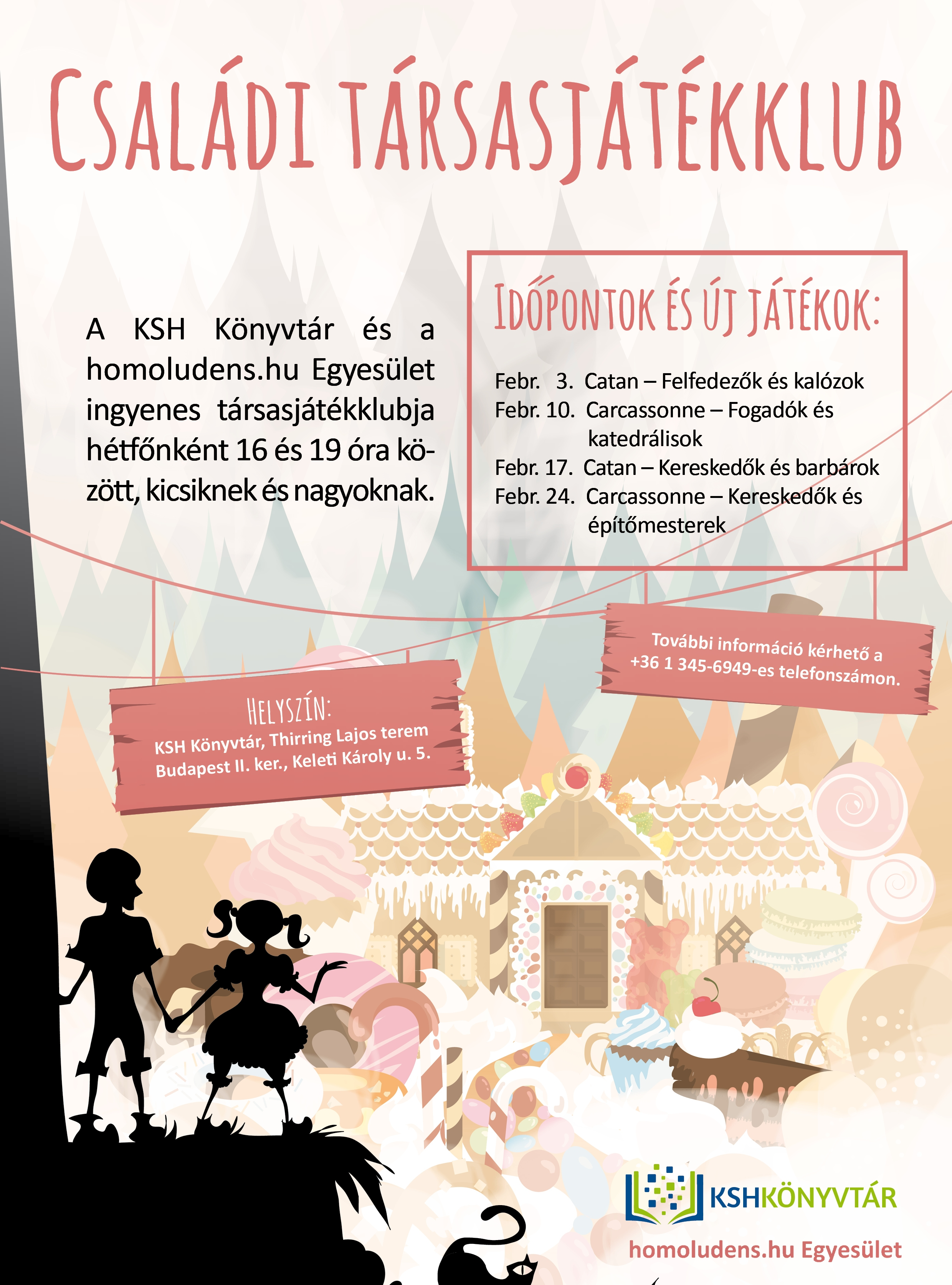 A KSH Könyvtár családi társasjátékklubja februárban is várja hétfőnként 16 és 19 óra között a játszani vágyó kicsiket és nagyokat.