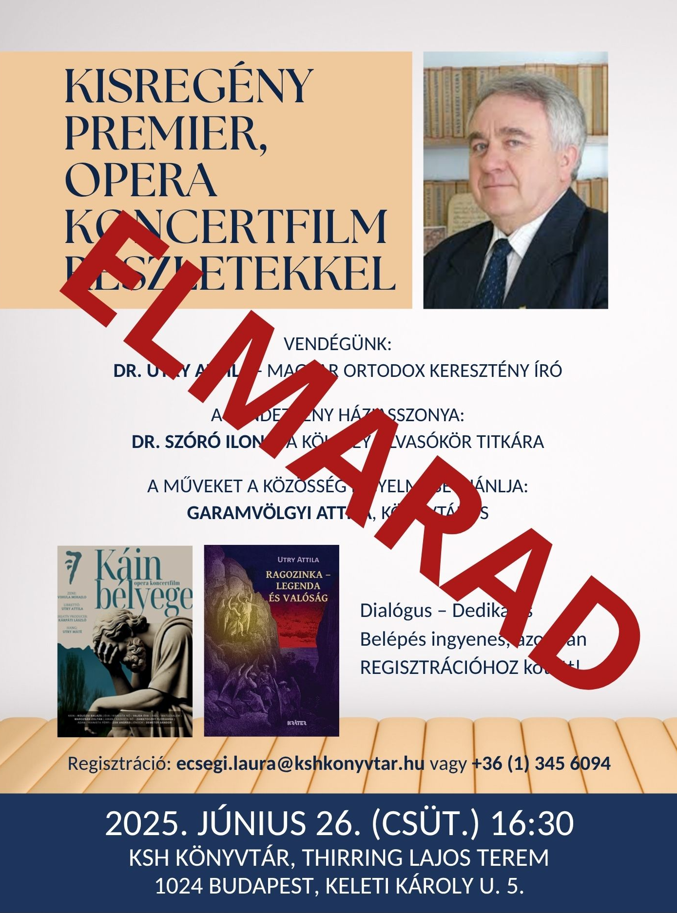 Sajnálattal kell közölnünk, hogy 2025. június 26-án 16:30-tól megrendezésre kerülő Utry Attila könyvbemutatója és beszélgetőestje ELMARAD!