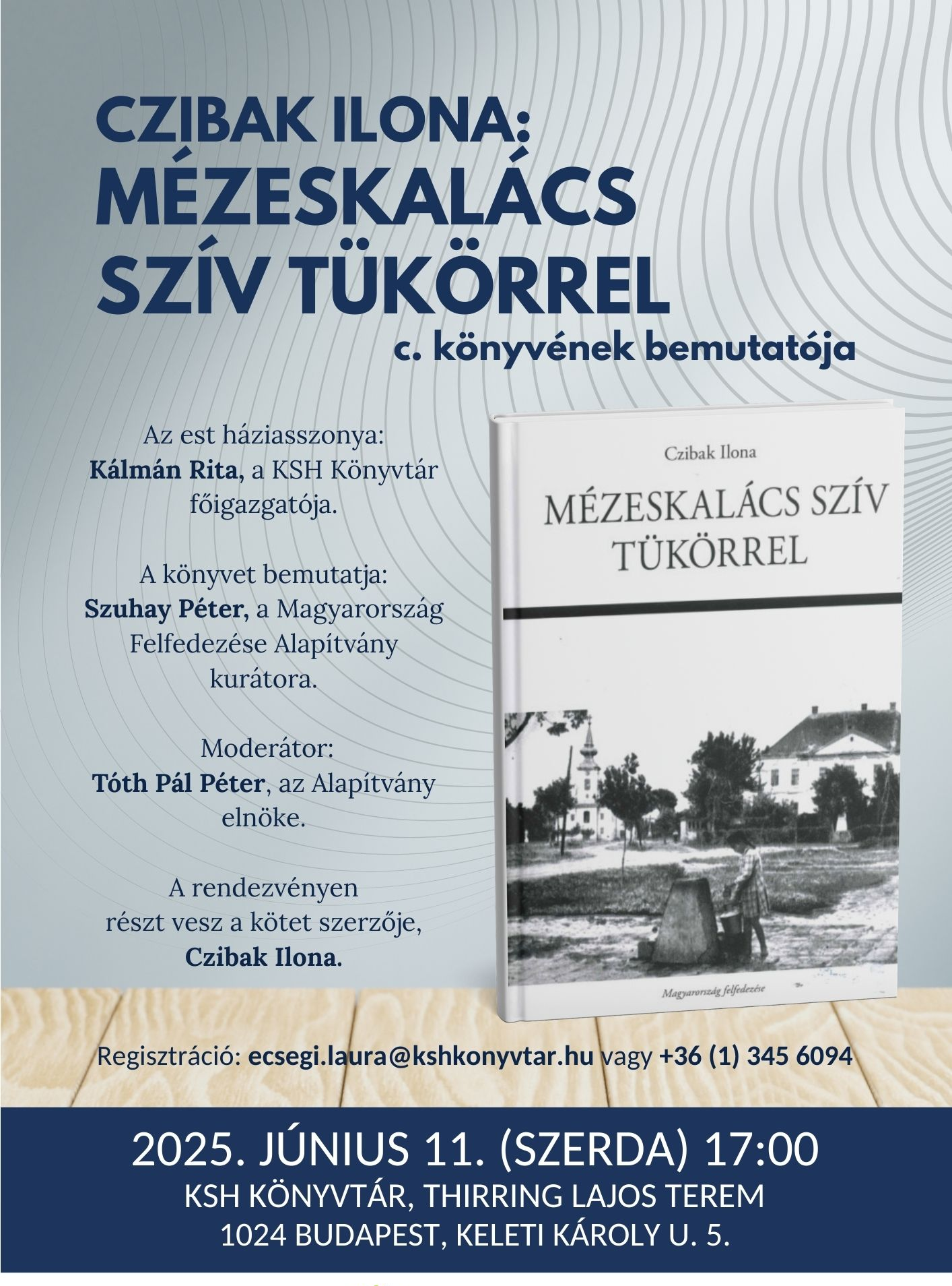 Szeretettel várunk mindenkit Czibak Ilona: Mézeskalács szív tükörrel c. könyvének bemutatójára, amely június 11-én 17 órakor kerül megrendezésre.