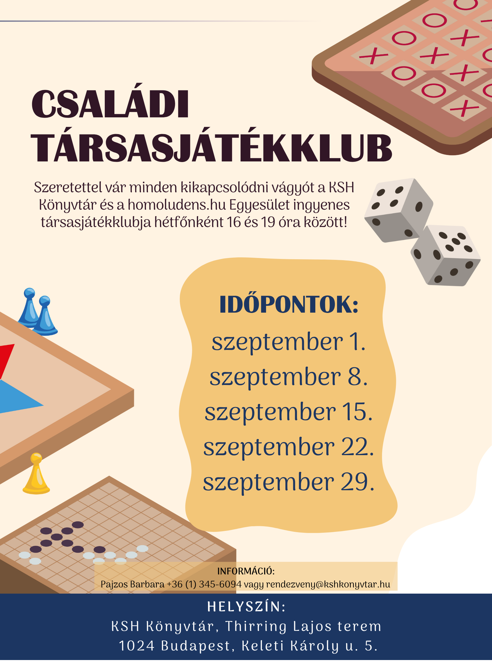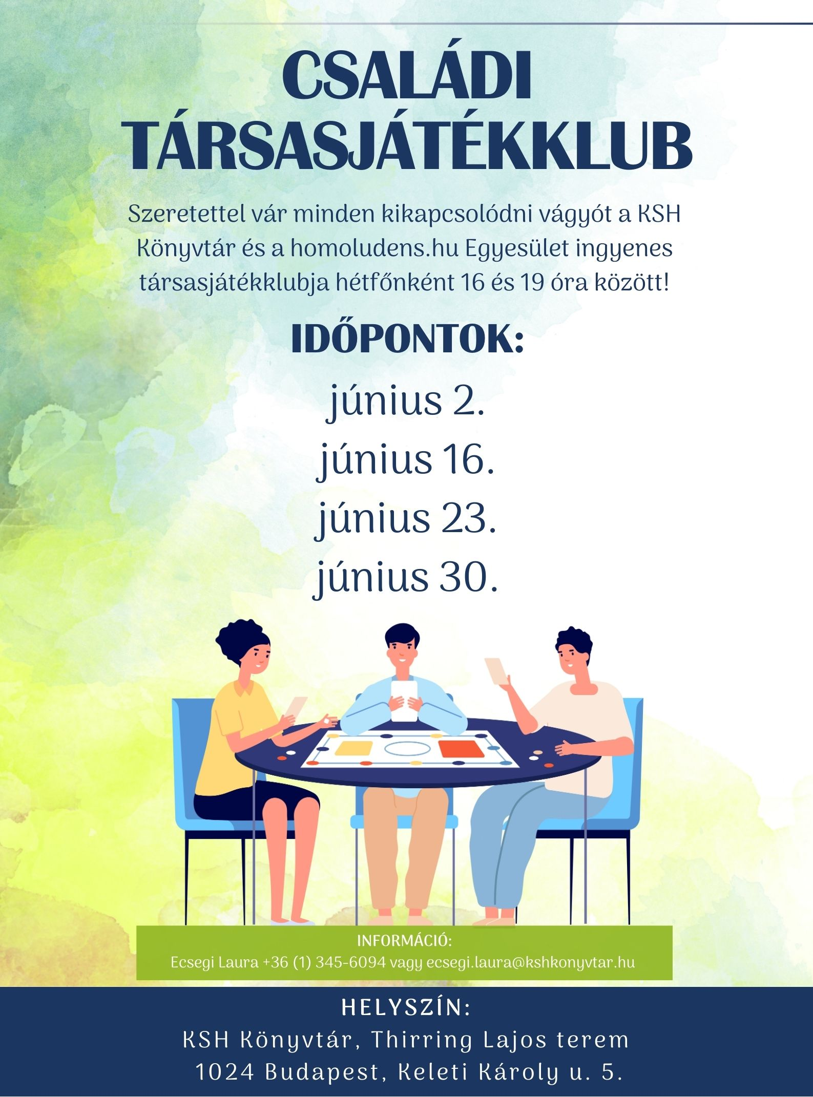 Ismét várja az érdeklődő kicsiket és nagyokat a KSH Könyvtár és a homoludens.hu Egyesület közös rendezésű családi társasjátékklubja hétfőnként 16 és 19 óra között!